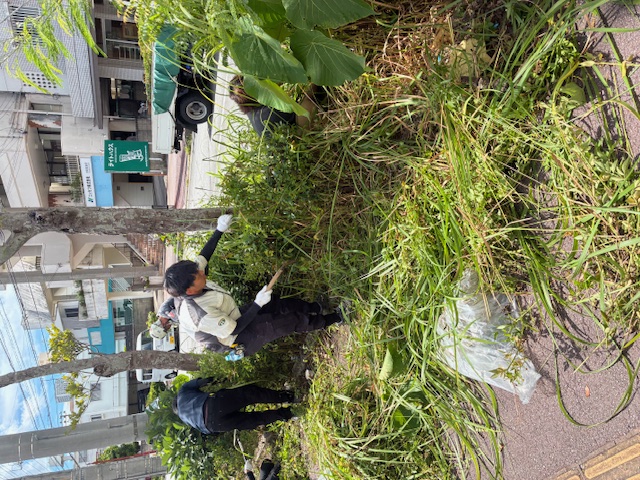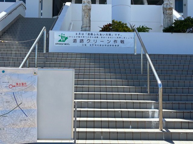 宜野湾市主催、毎年恒例の空き缶・ビン拾い、草刈り等の道路清掃作業を